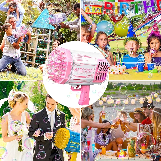 A powerful multi-hole bubble blaster designed to create hundreds of bubbles in seconds. Perfect for kids' playtime, parties, outdoor fun, and photography effects.